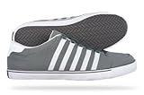 NEW K SWISS CLASSIC LP MENS TRAINERS The K-Swiss Classic, a timeless icon of sporting and street-wear heritage has been updated with innovations in design and materials Inspired by beach culture of the California coast, the Classic LP CVS VNZ is a fresh and classic low profile tennis inspired trainer These retro looking trainers are ultra comfortable and highly fashionable making these a top notch shoe Ideal for casual wear! Features a grey canvas upper with a lightly padded ankle and tongue for comfort and a white leather heel tab Also featured is the trademark K-Swiss 5 graduated stripes on both sides in white, an embossed grey K Swiss brand logo on the back of the white midsole, an embroidered white K Swiss shield logo on the tongue and two air vents on the inner side for breathability The D ring lacing system offers a secure fit The branded herringbone patterned rubber outsole delivers traction. ...